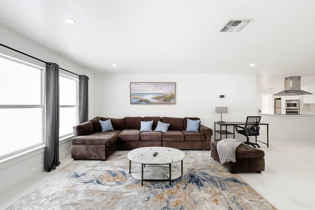 Our 3-bedroom, 2-bath home offers plenty of space for families and groups. Sleep comfortably with a king bed, queen bed, and two full-size beds. Enjoy a fully equipped kitchen, inviting living area, and private outdoor patio with a grill. Garage and driveway parking available.